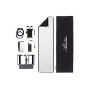 The BI-FABRIC 4 panel, at 48“x12“ weights only 2 pounds! This kit includes a professional-grade dimmer with a battery