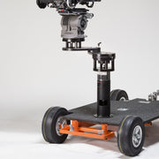The camera operator seat will mount in six different fixed locations. Steering from both ends of the Dolly will allow unlimited camera positioning, as the dolly rolls either on track with Hot Buttons or the Matthews Centipede or on the ground with the standard pneumatic rubber tires. Load capacity is over 1100 pounds (500kg) and the platform is carpeted for a non-slip, low-maintenance surface.