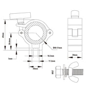 A black half coupler clamp that fits 50mm outside diameter pipe.