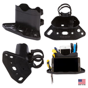 RoboCup Holster is our version of a "Mini Front Box" and is another exciting add-on accessory for the RoboCup that securely holds your pens, keys, wallet, phones, tools and much more.  In the storage area, there's a charging port slot which has been carefully designed and also a tiny drain hole.  The 6 tool slots are reinforced for durability and sized for carabiners, scissors, hex keys, pliers and screwdrivers.  For convenient viewing, a smartphone or tablet can be leaned against the Holster.